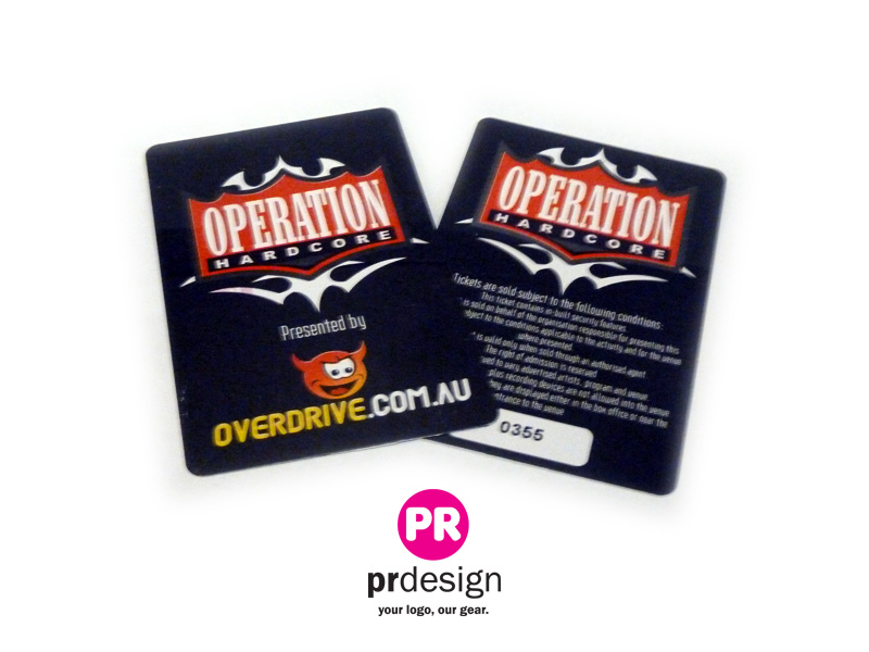 Standard full colour (CMYK) two sides. We can also do thermal printing, individual numbering, raised numbers and letters, lo-co magnetic stripes, barcodes, hot foil stamping, die cutting, glitter backgrounds and lots more.