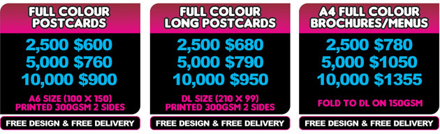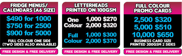 PR offers design and print for businesses throughout Australia. We design and print all types of promotional material including Business Cards, Letterheads, With Compliments Slips, Business Stationary, Posters, Posdtcards, Leaftets, Flyers and more.