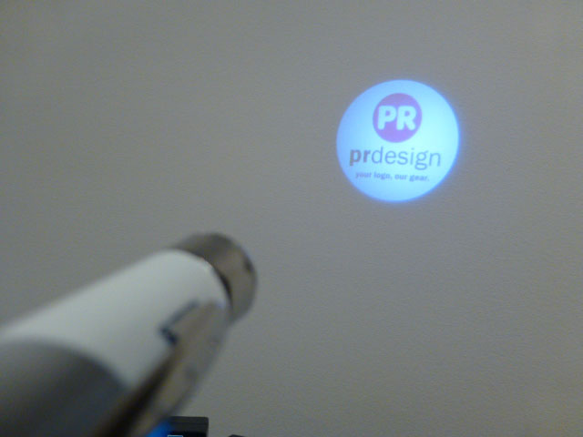 The all new product from PR, Projector Pens shoot your logo and/or message onto any surface! Featuring a powerful LED light the pens project your logo onto the wall. The PR Pojector Pens come complete with logo printed in up to 4 colours on barrel as well as projected image which can be a full colour image or photo. Our Custom printed Projector Pens are a great way to add novelty to the presentation of your logo and/or message and make for a very interesting giveaway.